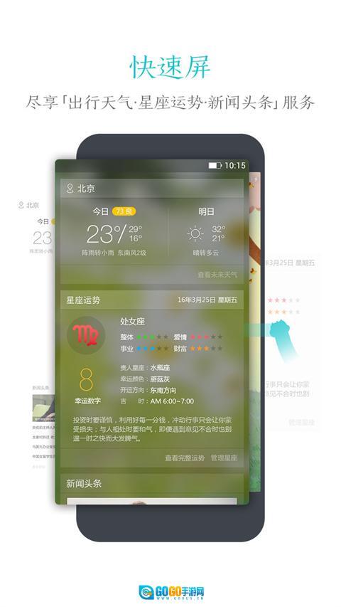 2、智能便捷屏:左侧快速屏集合了天气、星座、新闻等服务内容,点亮屏幕就能直接获取各类实用资讯。