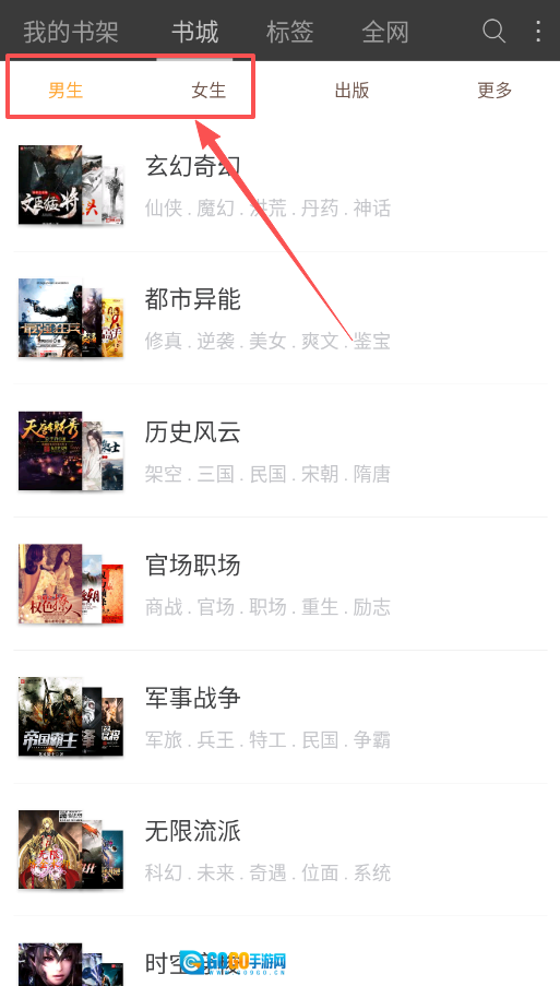 1、“男生、女生、出版”等大类已划分妥当,其下还设有玄幻、都市等细致分类,便于你依据兴趣进行挑选。