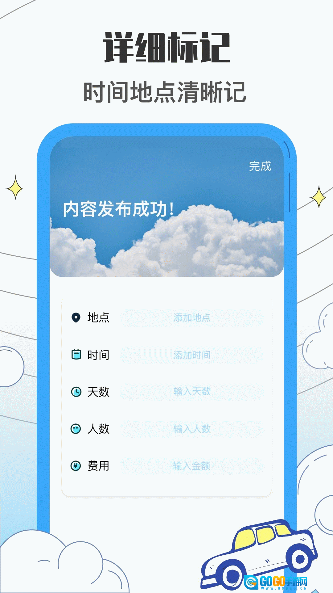 2、这款软件支持你依据实际遇到的日期记录旅行相关内容,能高效留存每次旅行的日期、开销以及体验。
