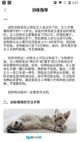 5、“训练指导”中将以十分专业的角度,为“铲屎官”提供猫猫与狗狗科学有效的训练指导方案。