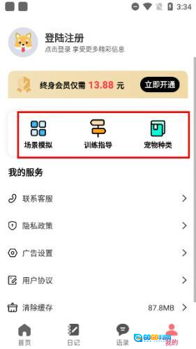 4、为了帮助“铲屎官”朋友更好的和自己的宠物相处,还提供了场景模拟、训练指导、宠物分类等功能。