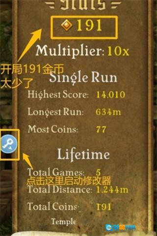 2、添加游戏“神庙逃亡”后,点击图标启动游戏。需要注意的是,必须在八门内通过启动游戏,这样修改才能生效。