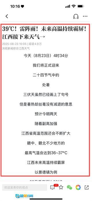 2、在搜索页面,从热门推荐里选择关于江西未来天气的新闻。