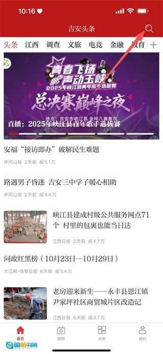 1、打开吉安头条首页后,点击页面右上角的搜索图标,即可进入搜索页面。