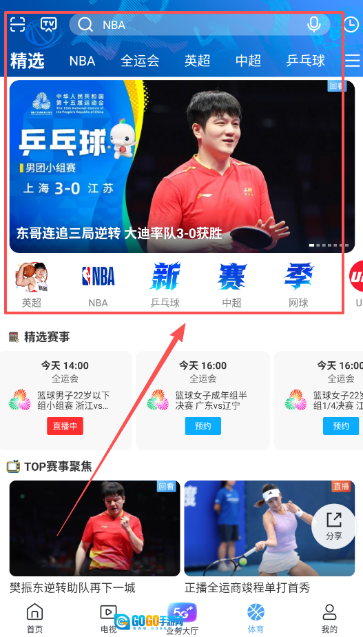 4、体育专区汇聚了NBA、全运会、英超等热门赛事的精选信息,像点击乒乓球赛事就能查看男团小组赛的详细内容,助你不错过每一个精彩瞬间。