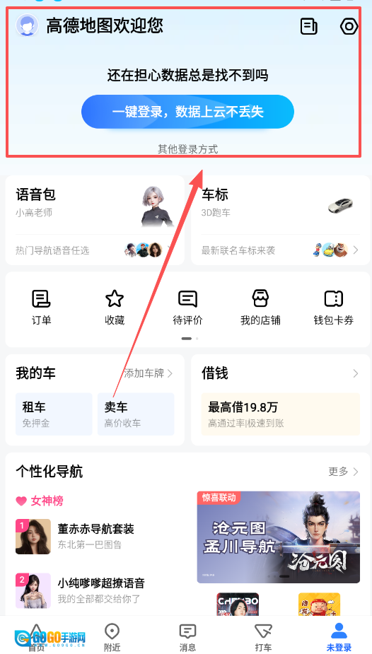 1、首先需要登录账号,这样能确保地址收藏、行车路线等个人数据不会丢失,登录之后还能在“我的”页面里更换导航语音和车标。