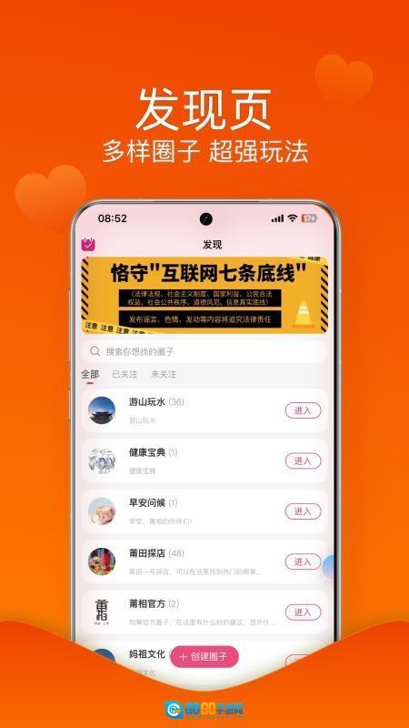 支持用户加入或创建圈子,就能和众多本地市民互动交流,轻松分享充满乐趣的生活。