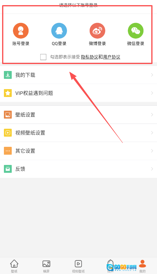 1、第一步是打开软件,你可以通过账号、QQ、微博或者微信来快速登录,要记得勾选同意隐私和用户协议,这样能帮你更快捷地找到心仪的风格。