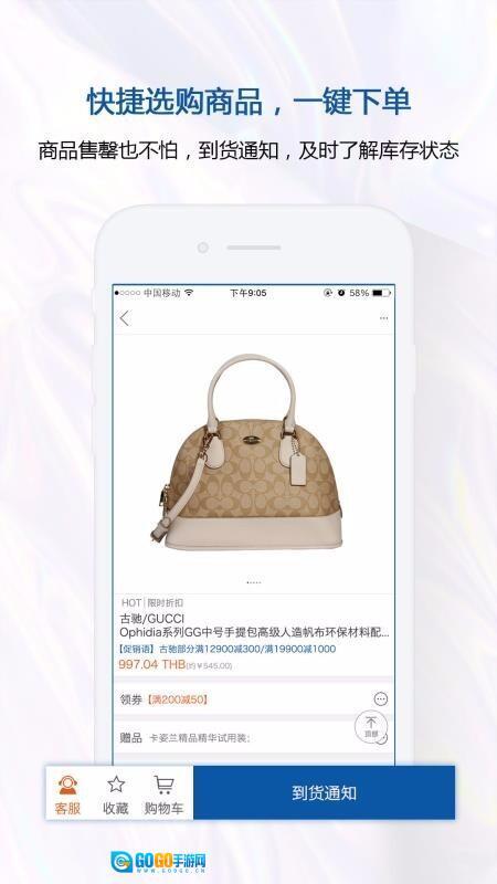 3、软件设有到货通知功能,能实时告知您售罄商品的补货情况,助您及时购入心仪的商品。