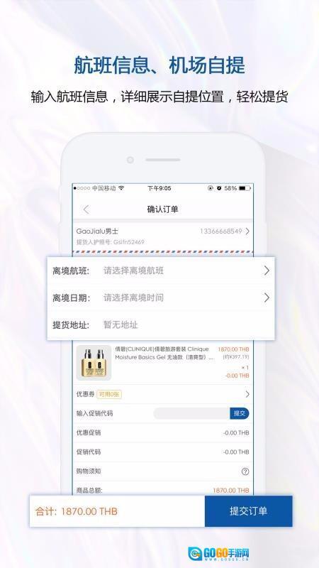 1、只需输入航班信息,就能快速定位自提地点,助您便捷取到免税商品,为您的购物提供支持。