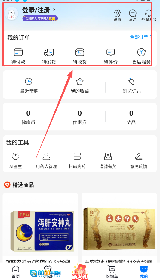 1、打开后,可先在底部导航栏选择“我的”进行登录或注册,这样能方便你随时查看订单进度。