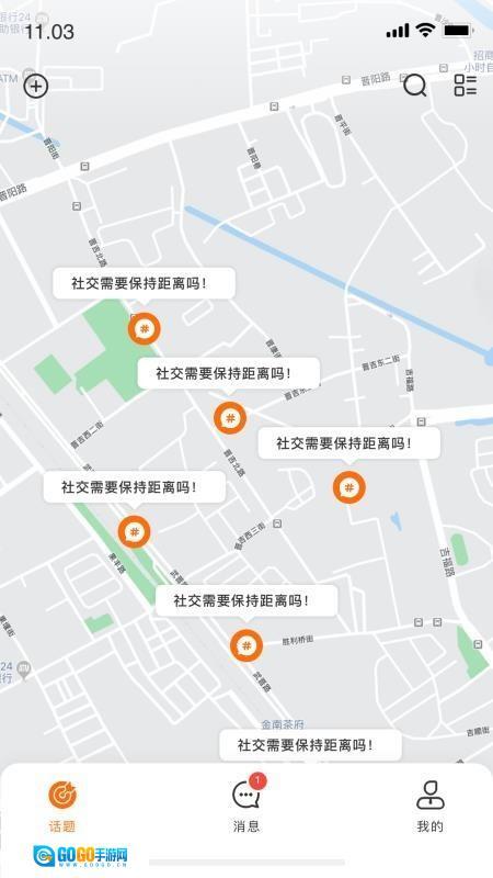 2、地图漫游功能:借助定位功能探寻周边的话题组,达成线上与线下社交的联动。