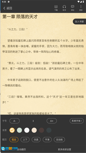 进入阅读界面后,点击【设置】按钮,就能对阅读相关的各项选项进行调整啦。