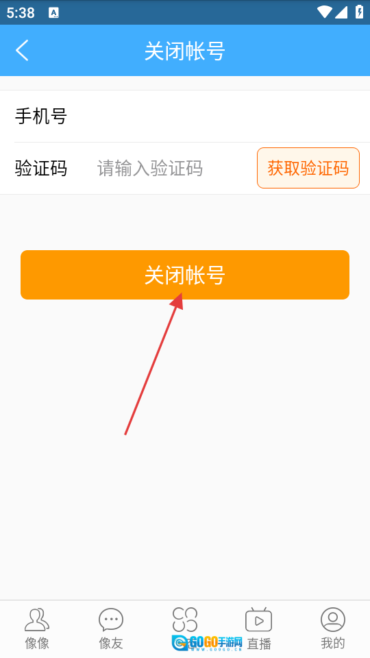4、进入关闭帐号页面后,输入手机号与验证码,接着点击【关闭帐号】按钮,就能完成帐号关闭操作。