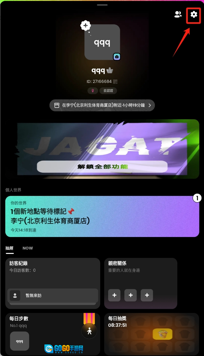 1、进入个人页面中点击右上角的设置按钮。