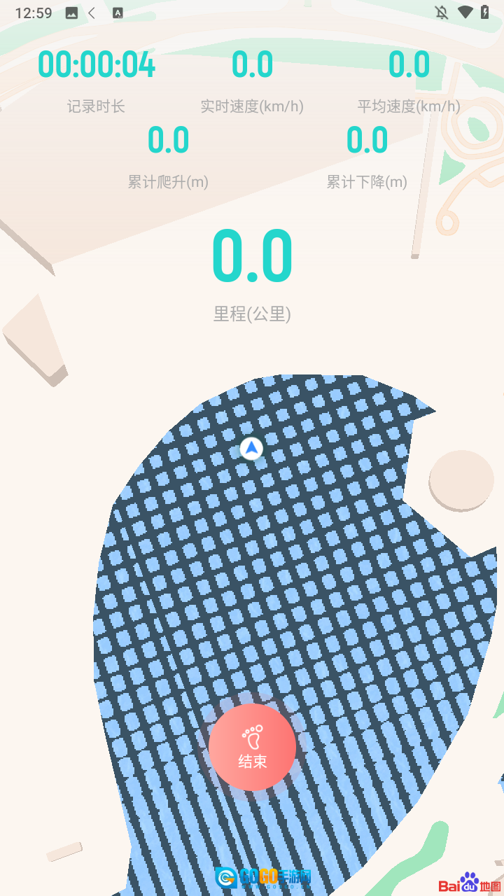 3、在确认好运动模式之后,点击“开始”按钮,App就会自动记录下行程轨迹以及相关的数据。