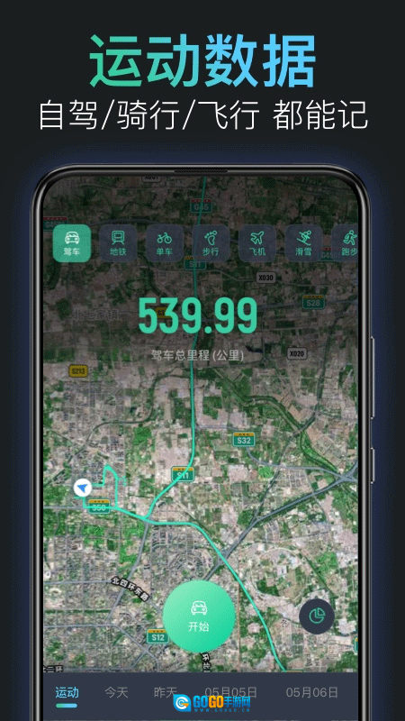 7、【运动记录】:可支持跑步、骑行、自驾等多种运动场景,并且能够对运动轨迹展开智能分析;