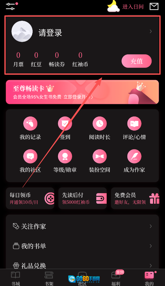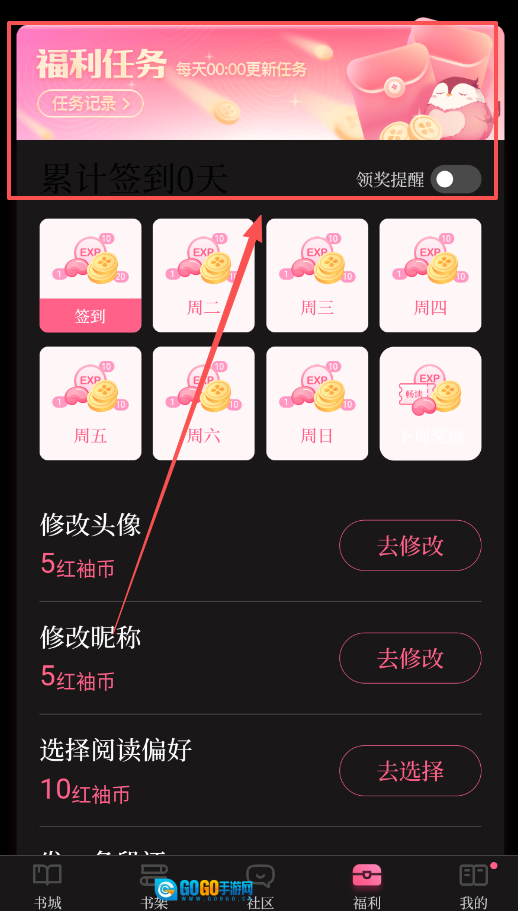4、记得常去福利中心看看,那里有每日领币、先读后付、邀请好友等各类活动,完成简单任务就能拿到红袖币和免费阅读权限。