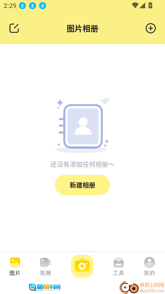 3、进入软件的图片相册界面后,点击中间的“新建相册”按钮即可进行下一步操作。