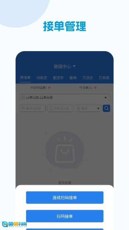 强大的扫码接单功能,在应用内即可一键开启接单模式,便于快速接单并完成配送;