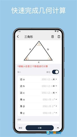 这款几何计算器功能简洁实用,用户可以根据自身需求轻松操作计算,无需繁琐步骤就能完成各类几何图形的计算任务,充分满足使用需求,是一款便捷易用的几何图形计算工具。