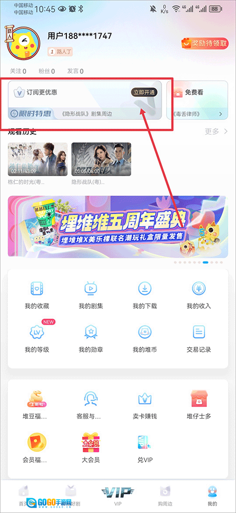 埋堆堆如何开通会员1、在我的界面中,点击立即开通