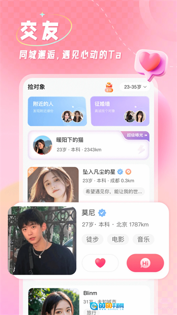 捡对象是一款为用户打造的社交婚姻交友类软件。在该软件的功能设置中,每位用户都需完整展示个人资料,且这些资料均真实可靠,能让相亲对象直观了解,同时软件会保障用户隐私安全,不会轻易泄露个人信息。用户可通过不断尝试,最终找到心仪之人。