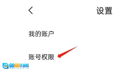 2、打开设置菜单栏,找到账号权限选项并点击进入。