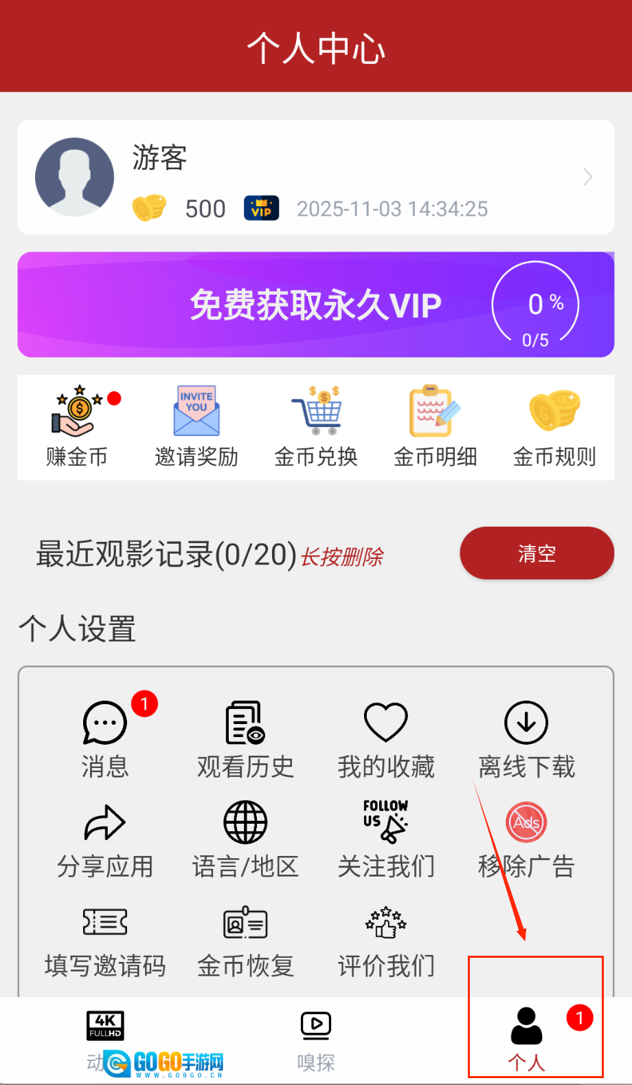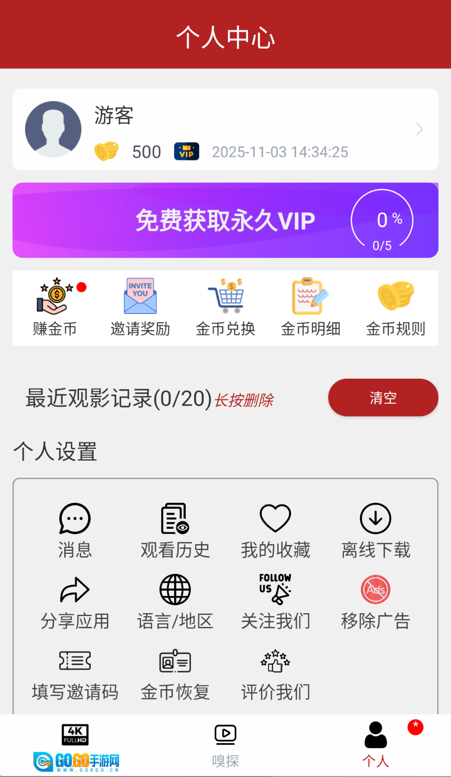 4、个人中心整合了观看历史、收藏列表与设置选项等核心功能模块。用户可在此对个人数据进行管理,按需调整播放偏好设置,还能完成缓存空间的清理操作。