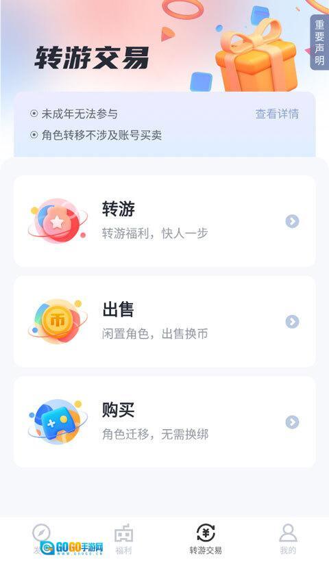 3、要是打算购买账号,也能在“转游交易”板块中找到。