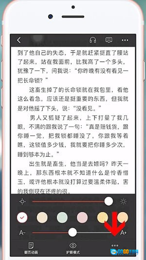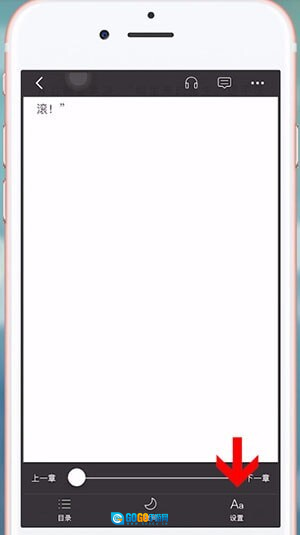 打开连尚读书应用,选择一本小说进入其阅读界面,轻触屏幕调出界面菜单栏后,点击右下角的设置选项。