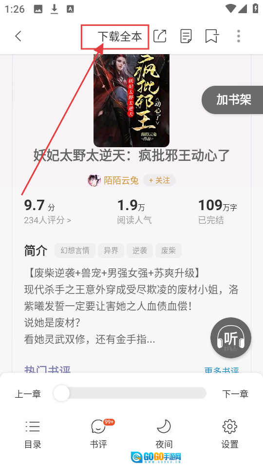 2、在这里,你不仅能够阅读小说,还能一键开启听书模式,更便捷的书籍体验让你可以尽情沉浸其中。
