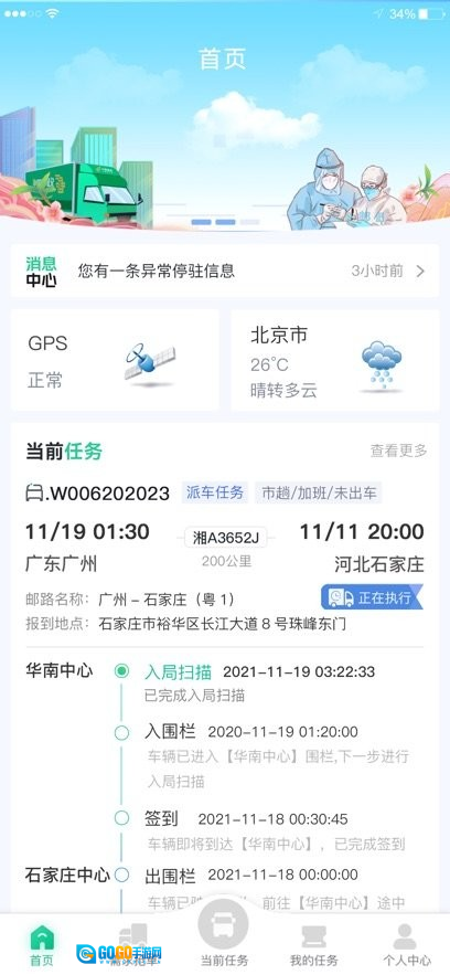 驾驶员能够借助移动端,从中国邮政车辆运行管控平台完成任务领取操作。