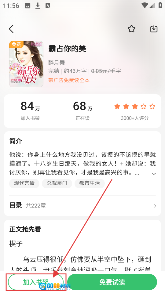 2、在小说详情页点击【加入书架】,就能把《霸占你的美》添加到书架,方便后续阅读啦。