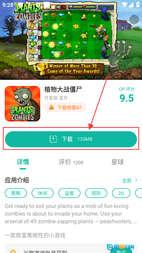 4、游戏详情页点【】,即可游戏,是不是很赞呀。