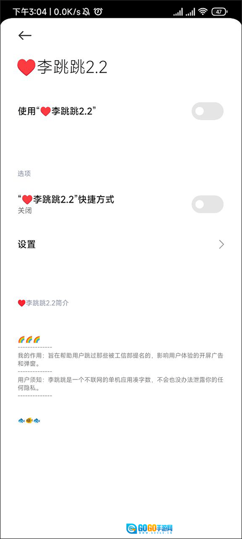 进入到小编这个界面,把最上面的【使用李跳跳2.2】点开就可以了。