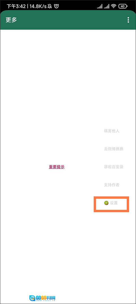 我们再回到【更多】页面,找到设置点击进入应用列表界面。