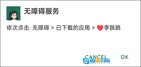 点击后会弹出一个开启无障碍服务的步骤,我们点击ok就可以自动跳转到设置。