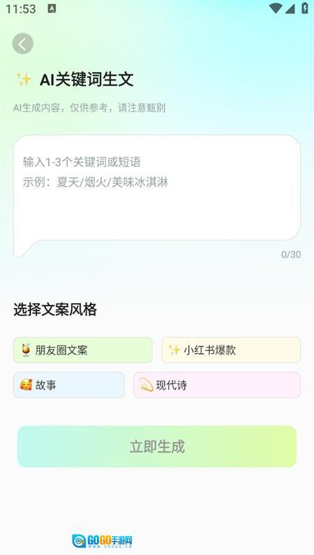 1、智能内容生成:AI生文功能能够依据关键词迅速生成热门文案,助力解决创作灵感不足的难题。