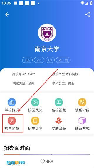 3、在院校详情页,点【招生简章】选项,可进入该院校的招生简章列表页面呢。