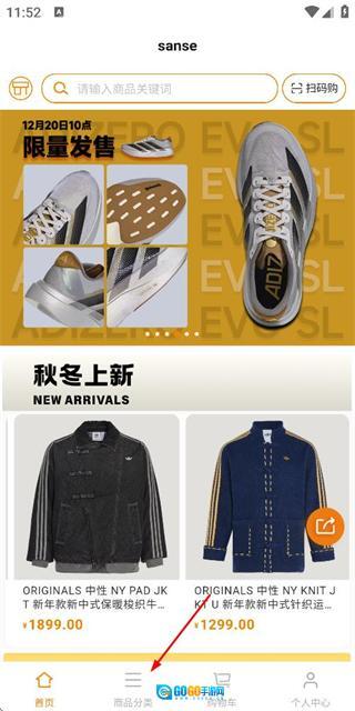 1、在首页点击底部的商品分类选项,进入商品分类页面。
