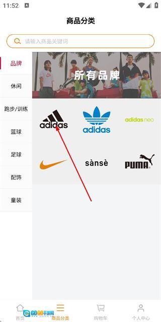 2、在商品分类页面选择目标品牌选项,即可进入该品牌的商品列表页面。