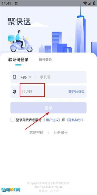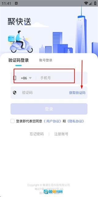 2、在登录页面填写手机号,勾选协议后,点击获取验证码。
