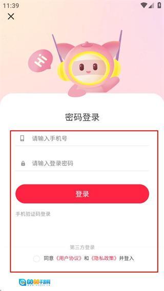 3、在密码登录页面,填写相关信息并勾选协议后,点击登录按钮就能完成账号登录操作。