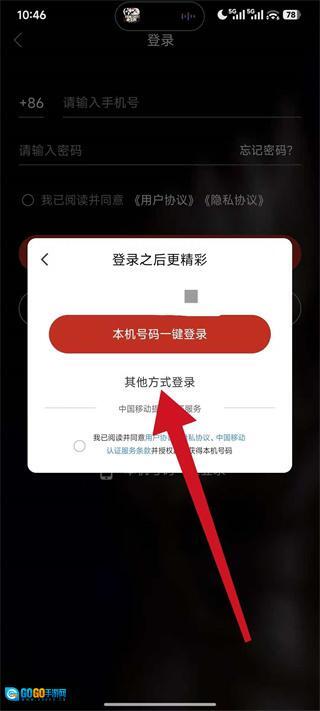 3、登录界面设有“其他方式登录”选项,点击该选项即可切换至账号密码登录模式。