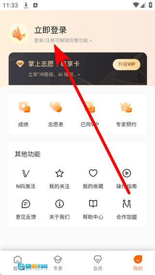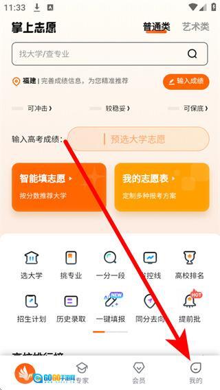 1、打开掌上志愿应用,点击底部导航栏中的“我的”选项,即可进入个人中心页面。