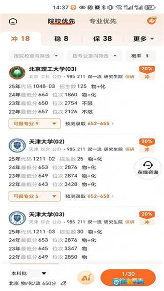 1、志愿填报全场景覆盖,贴合智能推荐、录取预测、政策解读等多元需求,兼顾不同分数段、不同选科组合、不同地域偏好的考生诉求,实现高考志愿填报全流程、全维度的服务覆盖。