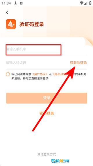 3、在登录验证页面的手机号输入框中填写手机号码,随后点击“获取验证码”按钮。