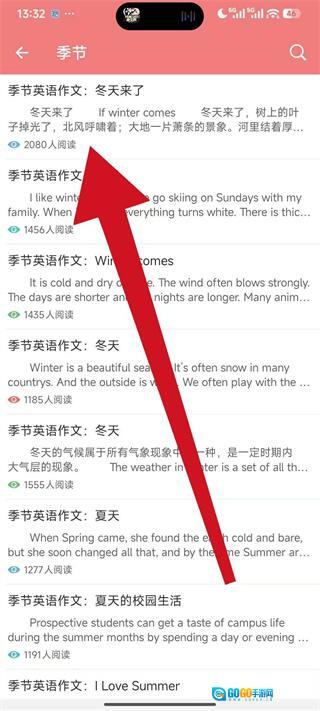 3、在季节主题的作文列表中,选择想要查看的具体作文,点击进入作文详情页。