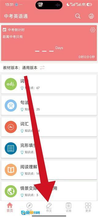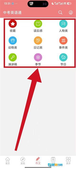 1、打开中考英语通,点击底部导航栏的作文,进入作文分类页面。